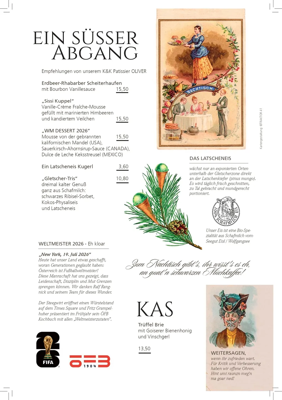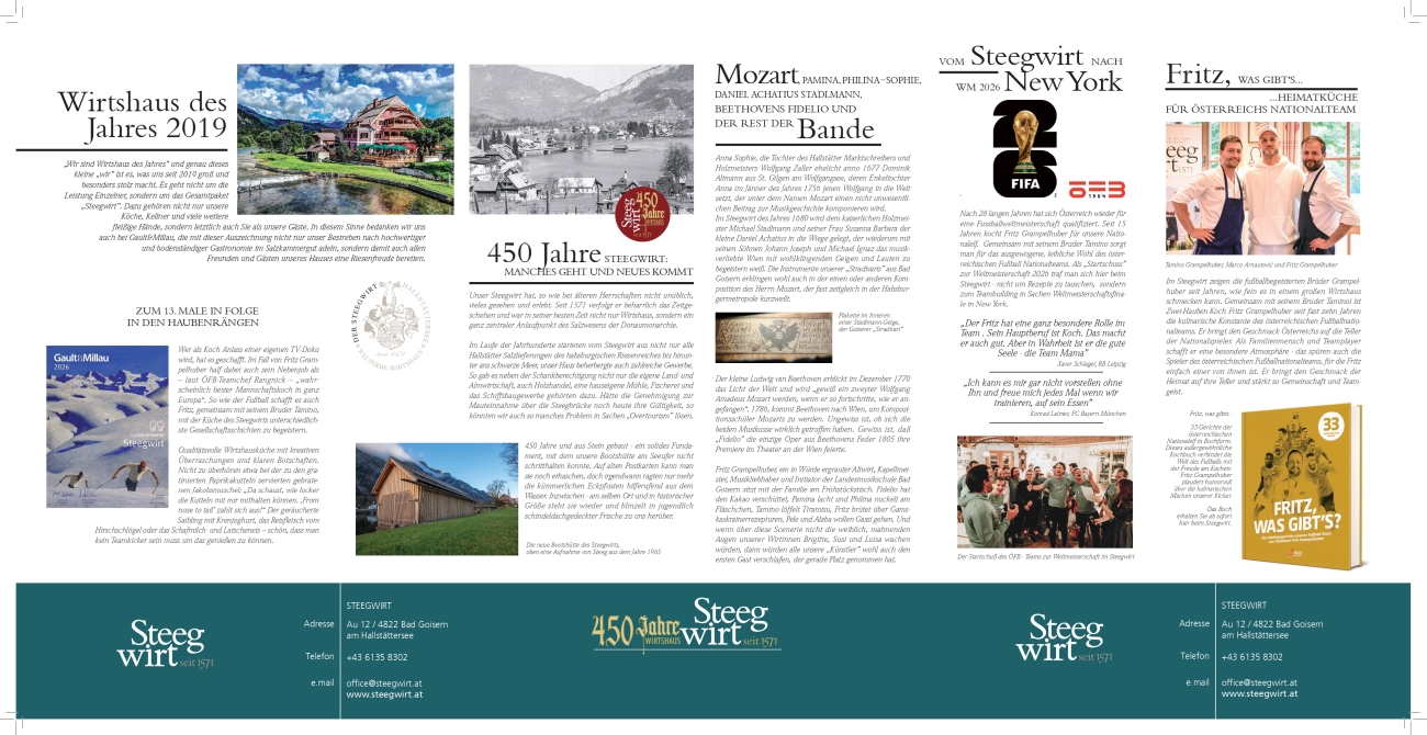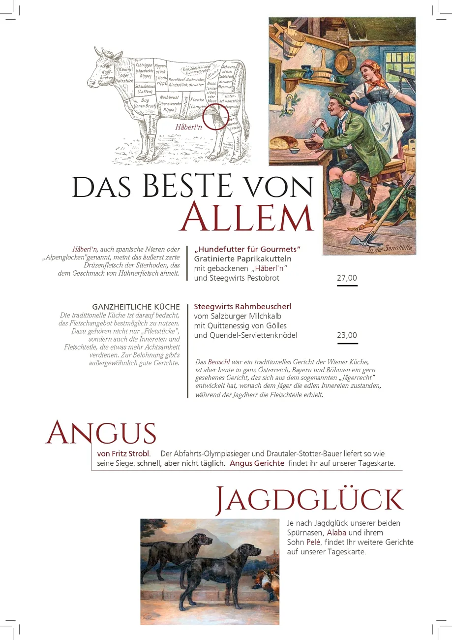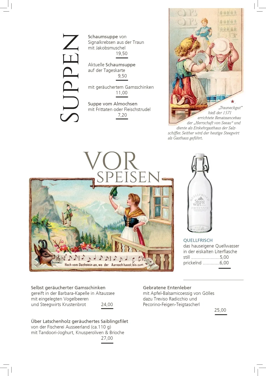 Beim Steegwirt erleben Sie gehobene Gastronomie bei ansprechendem Ambiente vor der Kulisse der Welterberegion Hallstatt – Dachstein – Salzkammergut. Traditionelle Rezepte, modern interpretiert und in Perfektion aus regionalen Ingredienzien ausgeführt: Begeben Sie sich bei uns auf eine kulinarische Entdeckungsreise und probieren Sie unsere sorgsam zubereiteten und liebevoll angerichteten Köstlichkeiten!
